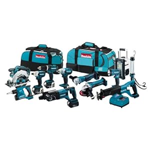 The Makita 18V LXT Lithium-Ion Cordless 12-Piece Combo Kit is built for the pro-user who demands a full range of Best in Class cordless solutions. The LXT1200 delivers 12 Lithium-Ion cordless tools for drilling, driving, fastening, sawing, grinding, demolition, and more. Each tool is powered by Makita's 18V LXT Lithium-Ion battery and the ENERGY STAR rated Makita Rapid Optimum Charger.